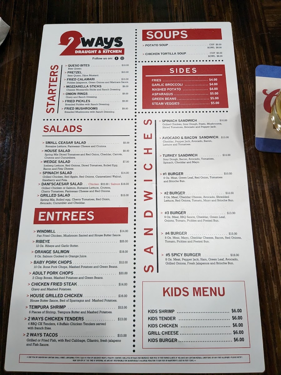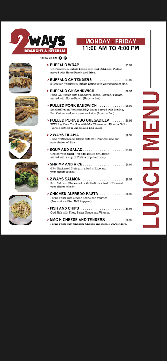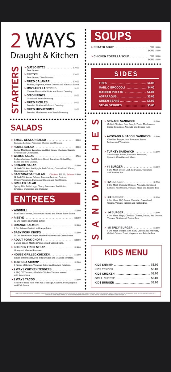 2 Ways Draught & Kitchen Menu